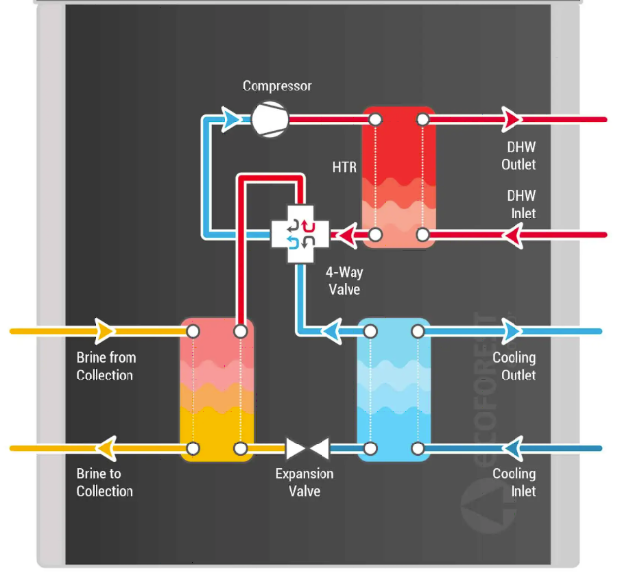 Ταυτόχρονη ψύξη και παραγωγή ΖΝΧ χωρίς πρόσθετο ενεργειακό κόστος.