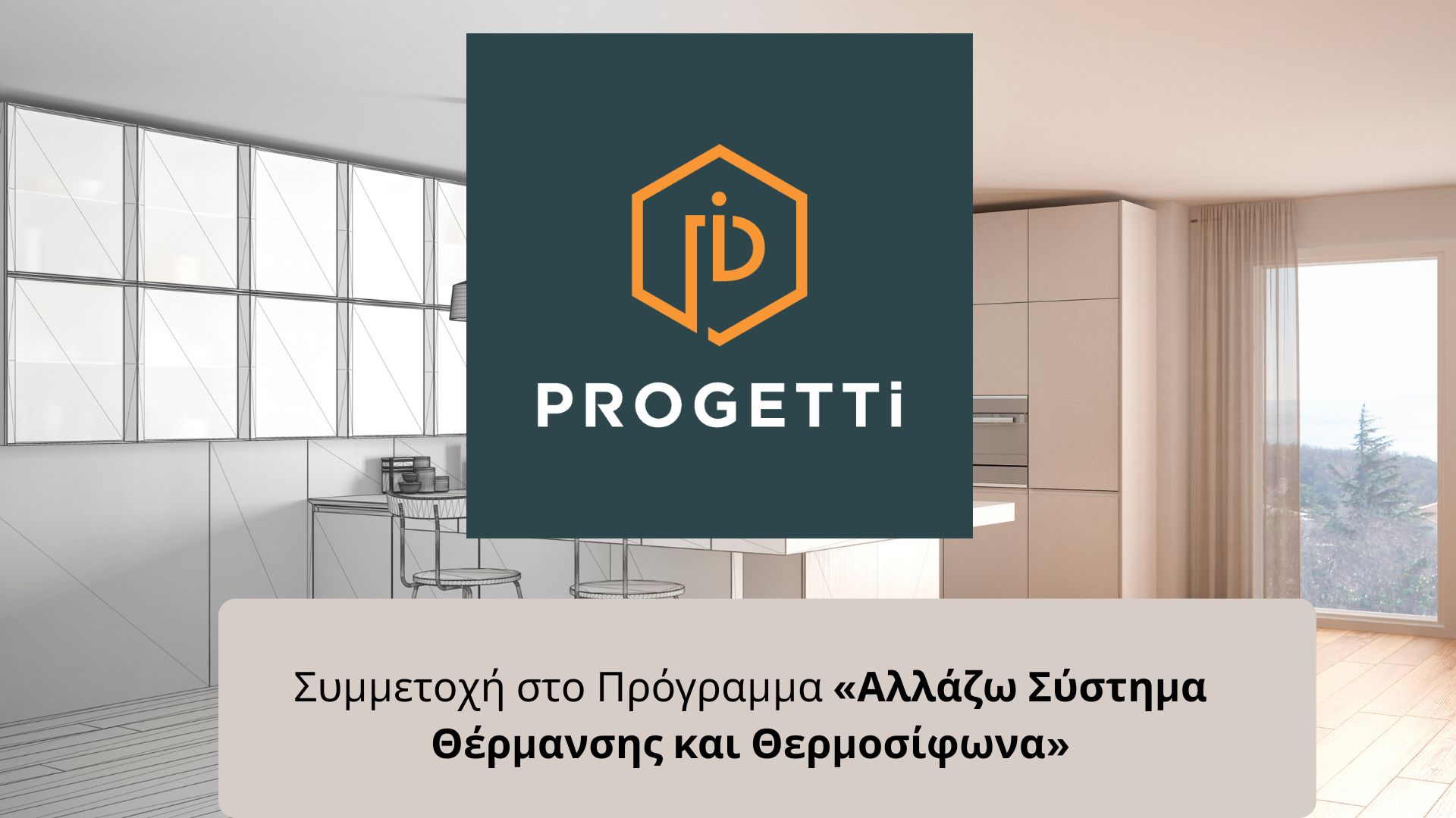 Μην αφήσετε την ευκαιρία να πάει χαμένη. Επικοινωνήστε με την Progetti σήμερα για να ενημερωθείτε για το πρόγραμμα «Αλλάζω Σύστημα Θέρμανσης και Θερμοσίφωνα» και να λάβετε εξατομικευμένη προσφορά.